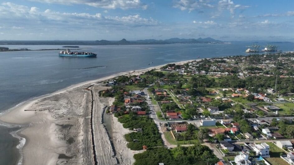 A estimativa para fim das obras de alargamento da praia de Itapoá é de treze meses, a contar a partir de outubro de 2025.