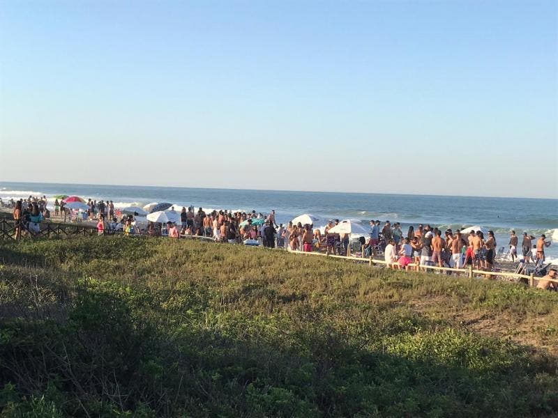 Uma grande concentração de pessoas foi flagrada na tarde deste sábado (20) na praia Brava, em Itajaí, no litoral catarinense. A aglomeração na faixa de areia descumpriu determinação do Estado, que proíbe agrupamentos, e ocorreu um dia antes de entrar em vigor decreto municipal que proíbe a circulação e a permanência em espaços públicos da cidade, incluindo as praias.
