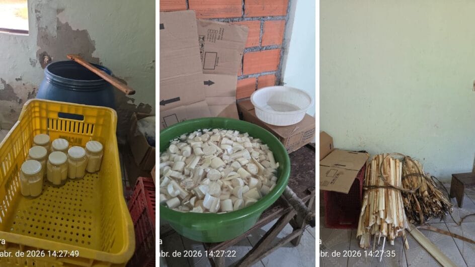No interior da fábrica clandestina, no bairro Guaricanas, os agentes encontraram uma quantidade expressiva de palmito in natura parcialmente picado. Além disso, havia palmito já armazenado em vidros de conserva, prontos para comercialização, porém sem qualquer rótulo ou identificação.