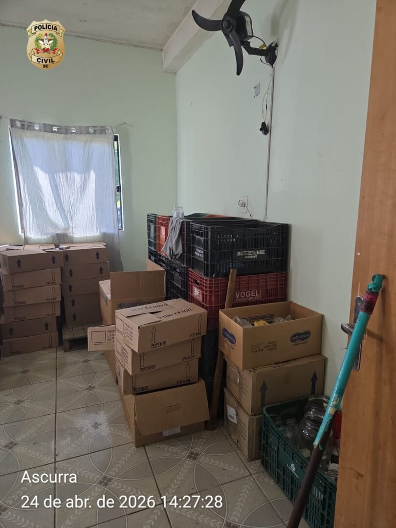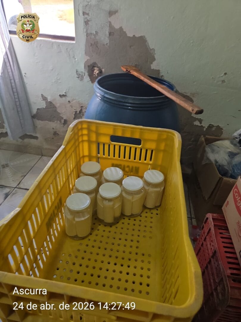 A polícia disse ter encontrado também vidros vazios, uma panela industrial, botijões de gás e várias caixas utilizadas para transporte, sem documentação sobre a origem e o destino do produto.