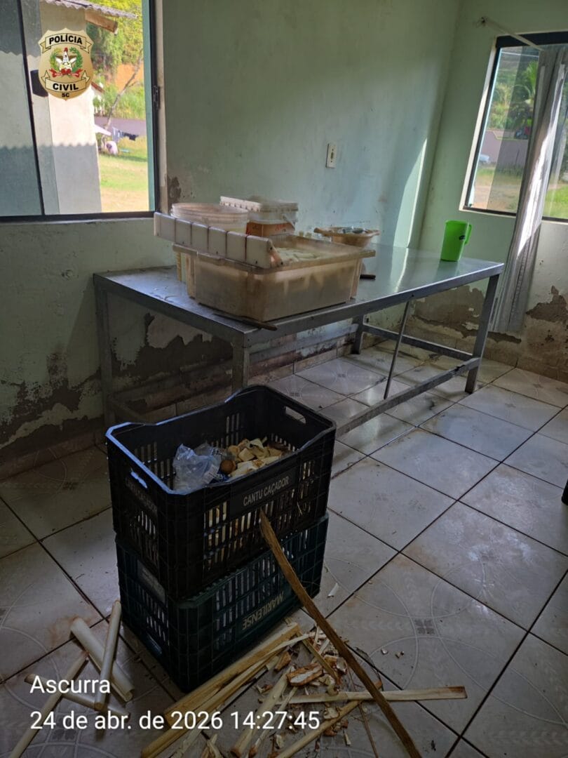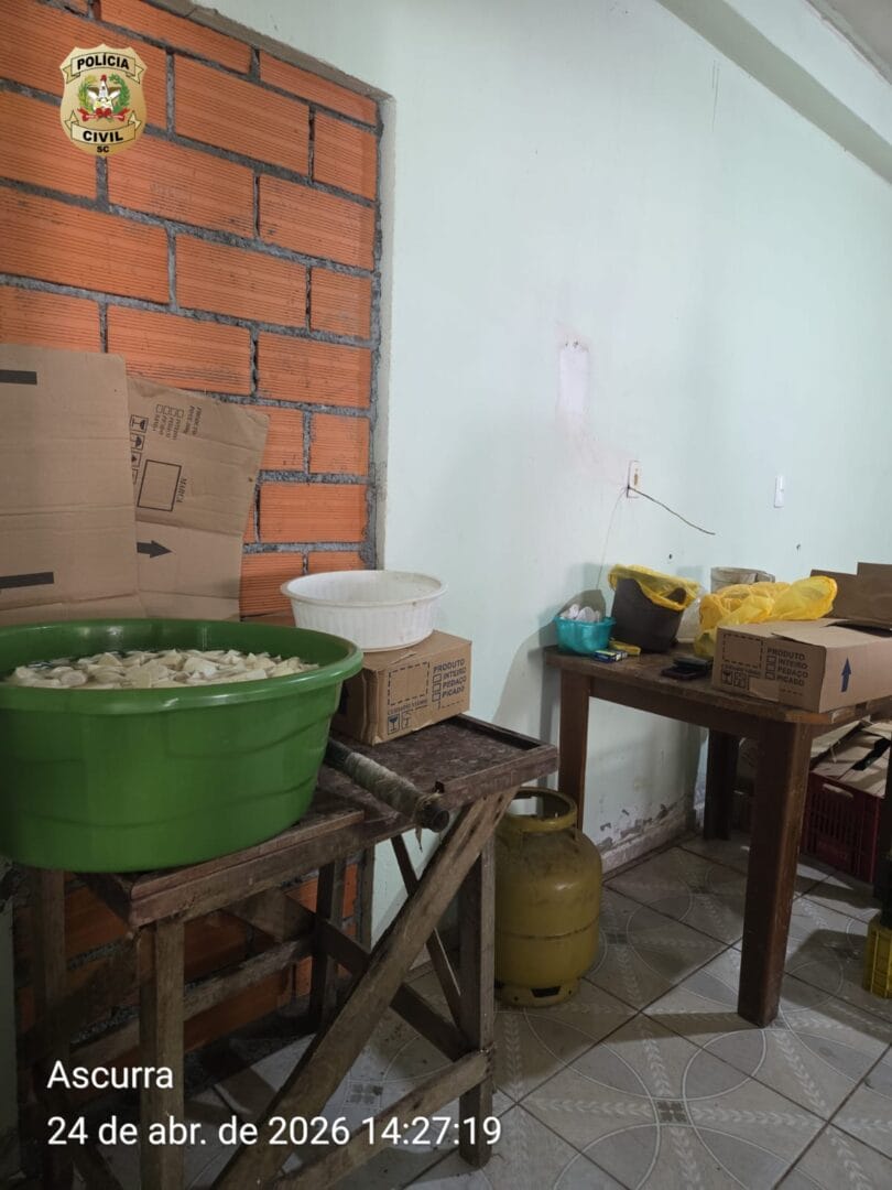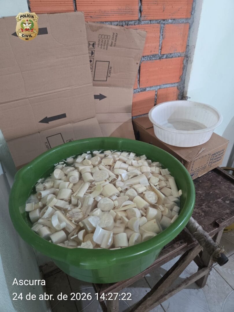 Uma fábrica clandestina de palmito foi fechada em Ascurra, no Vale do Itajaí, nesta sexta-feira (24). Um homem de 55 anos acabou preso em flagrante pela Polícia Civil e os produtos foram recolhidos pela Vigilância Sanitária (veja fotos abaixo).
