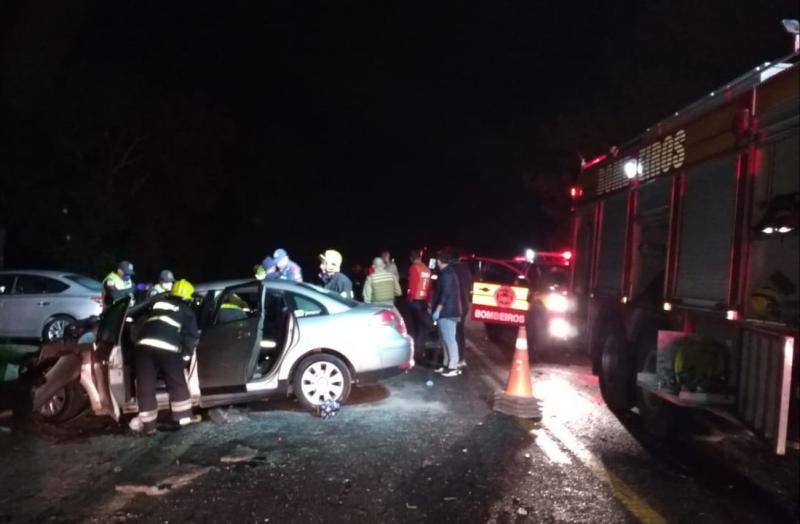 De acordo com a Polícia Rodoviária Federal (PRF), o acidente aconteceu por volta das 19h40min e, além dos dois carros que teriam batido de frente, um trator também se envolveu na colisão, mas o motorista fugiu do local antes da fechada da polícia.