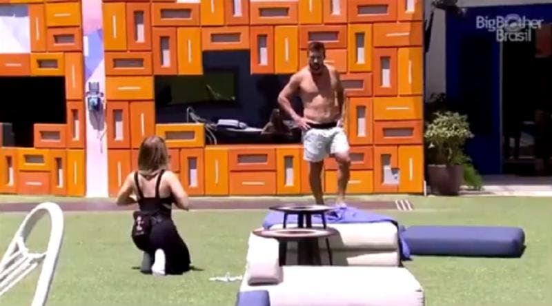 Assim que tirou a fantasia de dummy, Carla abraçou alguns brothers e se declarou para o crossfiteiro: “Você aceita ser meu parceiro no amor e no jogo até o final desse programa?”.