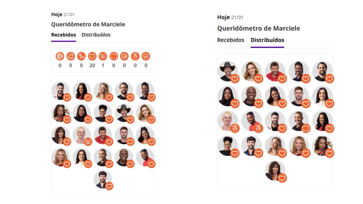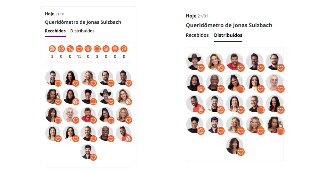 Inicialmente, a avaliação era feita com a distribuição de 1 a 5 corações para cada colega. A partir de 2020, o sistema foi reformulado: os corações deram lugar a emojis, que passaram a representar diferentes sentimentos e percepções, de afinidade e carinho a rejeição e rivalidade.