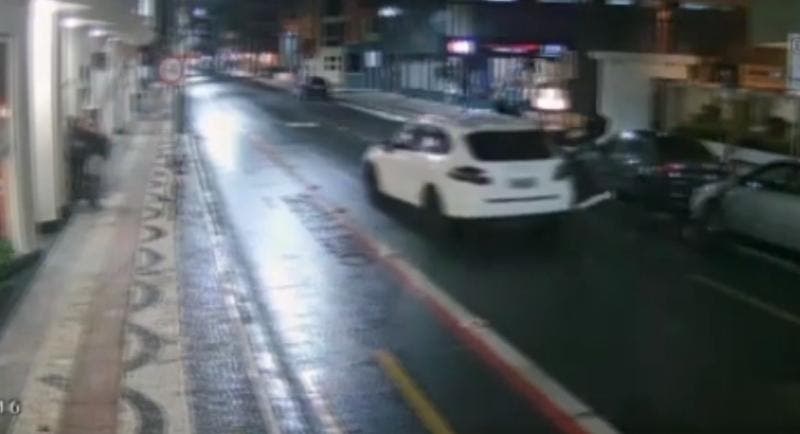 Um homem foi atropelado por um Porsche em Balneário Camboriú na madrugada deste domingo (11). Uma câmera de segurança flagrou o acidente. A gravação mostra que o motorista fugiu do local sem prestar socorro. A esposa da vítima perseguiu o condutor até fazer ele parar e ser preso.
