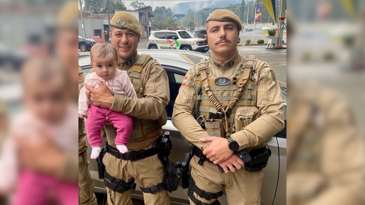 “Percebendo que a criança estava chorando bastante, visivelmente assustada e que acabou abaixando a touca que estava na sua cabeça, vindo a sufocar a mesma”, informou a PM em nota. Em seguida, a guarnição decidiu quebrar o vidro do passageiro com um ferro, já que a criança estava sem respirar.