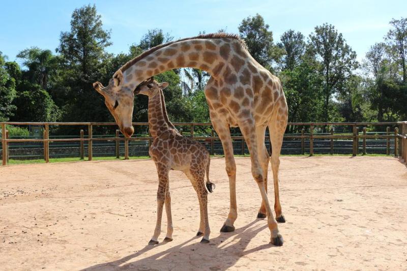 O nascimento de Catarina, no dia 12 de fevereiro, foi acompanhado com cuidado pelos biólogos e veterinários do parque. Assim que deixa a barriga da mãe, um bebê girafa tem até uma hora para ficar em pé, um sinal de que está bem de saúde. Valente, a girafinha levou menos de 20 minutos para se levantar e ganhar um carinho da mamãe, Savanah.