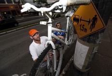 A bicicleta foi colocada em um ponto mais alto do poste. Havia poucas pessoas, e chovia no momento. Costa diz que colocar uma bicicleta fantasma não é apenas para representar a morte de um ciclista, é também um ato para conscientizar a sociedade no trânsito, que muitas meses representa um perigo para quem opta por andar de bike.