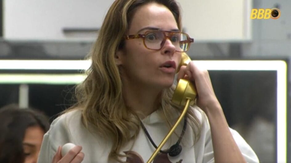Na manhã desta segunda-feira (16), Ana Paula Renault atendeu o Big Fone no BBB 26. A sister estava na cozinha quando o telefone tocou e ela correu para atender. Samira chegou primeiro e pegou o Big Fone, contudo largou e correu para a rua. A veterana então assumiu a ligação, que era uma ação do Mercado Pago.