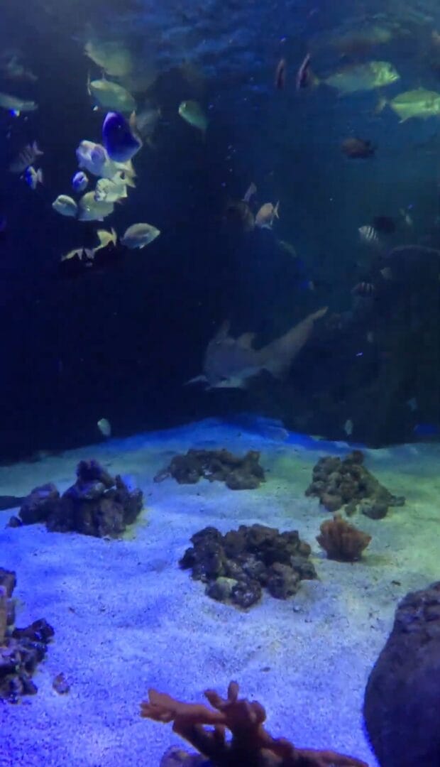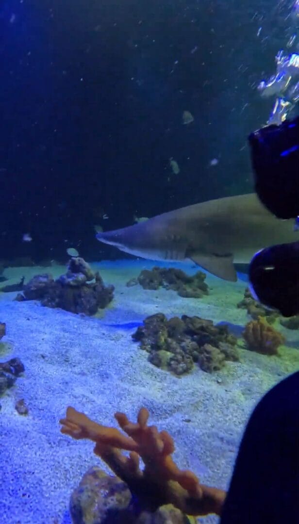 Paola nadou com dois tubarões-mangona, dois tubarões-bambu e um tubarão-galha-branca. Tudo isso dentro de um aquário com 300 mil litros de água com animais de outras 20 espécies, como raias e moreias. Antes de entrar na água, claro, ela recebeu instruções de mergulho.