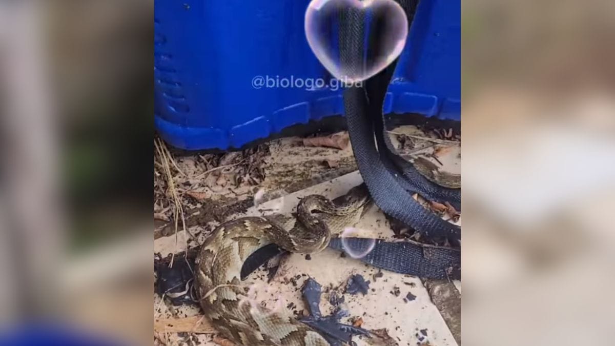 O biólogo Gilberto Duwe flagrou um momento raro de um casal de jararacas “namorando” na garagem de uma casa em Jaraguá do Sul, no Norte de Santa Catarina. O registro das cobras supervenenosas ocorreu durante um resgate.