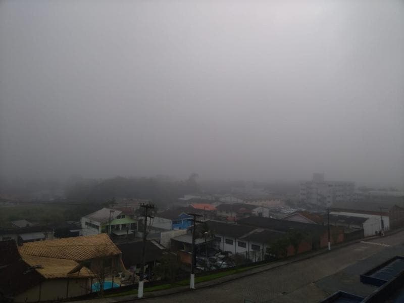 O amanhecer de quarta-feira em Blumenau foi de céu encoberto por um nevoeiro. Em alguns pontos, a densa camada deixou a visibilidade baixa. O fenômeno foi causado pela alta umidade do ar, associado ao resfriamento noturno, segundo o AlertaBlu.