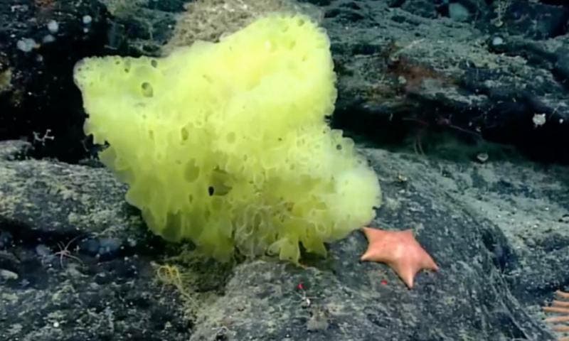 O tom amarelo da esponja é algo incomum, segundo o cientista. As cores mais encontradas na região são laranja ou branco. A estrela, no local, é mais vista na cor rosa escuro, claro ou branco.