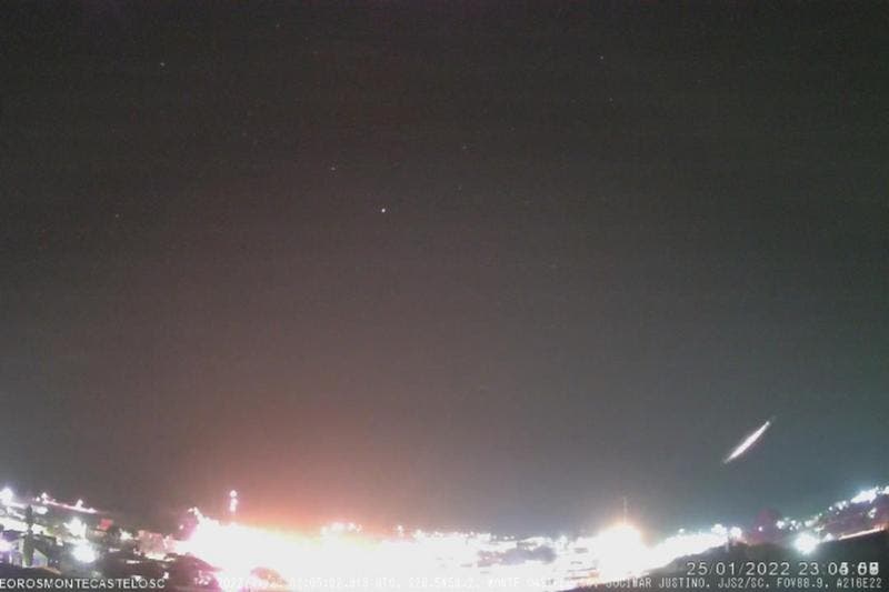 Moradores de Chapecó, no Oeste de Santa Catarina, foram surpreendidos por uma “bola de fogo” no céu por volta das 23h desta terça-feira (25). O fenômeno luminoso foi registrado pela Estação de monitoramento de meteoros localizada na cidade de Monte Castelo, Norte do Estado.