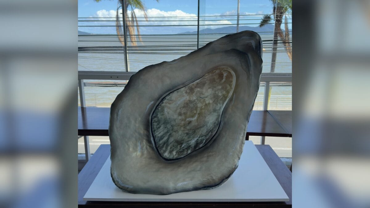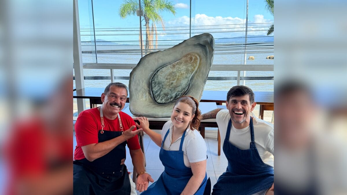 Três confeiteiros conhecidos em todo o país se juntaram para fazer um bolo em homenagem à cidade de Florianópolis. Para simbolizar a Ilha, o doce foi feito em formato de ostra, molusco amplamente cultivado na capital catarinense e um dos pratos que integra a culinária manezinha.