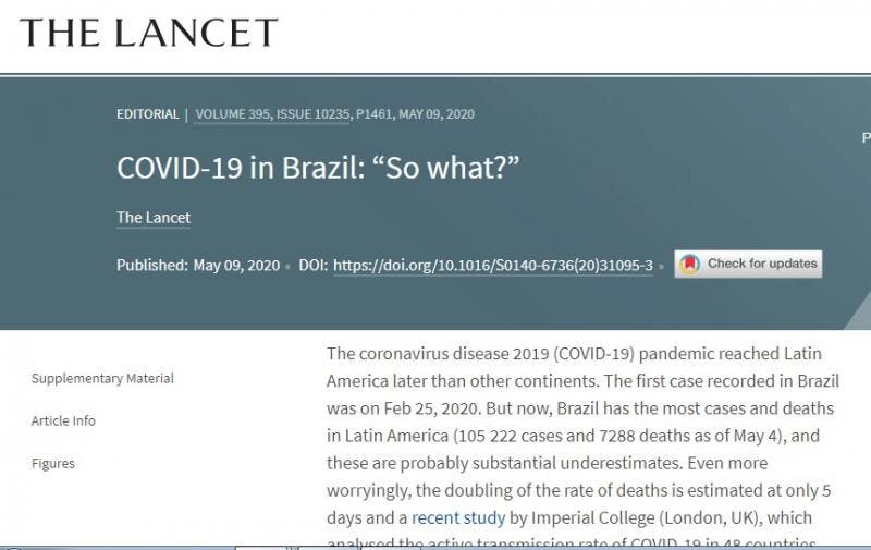 "É desesperador que o governo brasileiro não esteja seguindo as recomendações das comunidades médica e científica do país", disse o médico e editor da Lancet, Richard Horton, à reportagem ao explicar as motivações para a publicação do editorial. "O Brasil tem alguns dos melhores cientistas e pesquisadores do mundo, e o governo precisa ouvir esses profissionais e confiar neles."