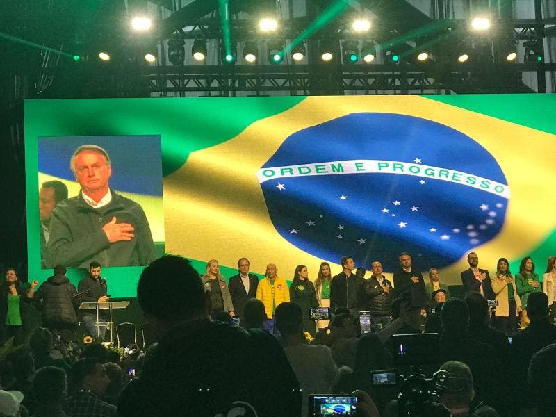 No palco montado em um dos salões do centro de eventos, ocuparam a linha de frente junto com Bolsonaro, no entanto, nomes do Legislativo eleitos em Santa Catarina pelo PL, caso do agora senador Jorge Seif (PL), o também senador e candidato ao governo catarinense Jorginho Mello (PL) e o empresário Luciano Hang.