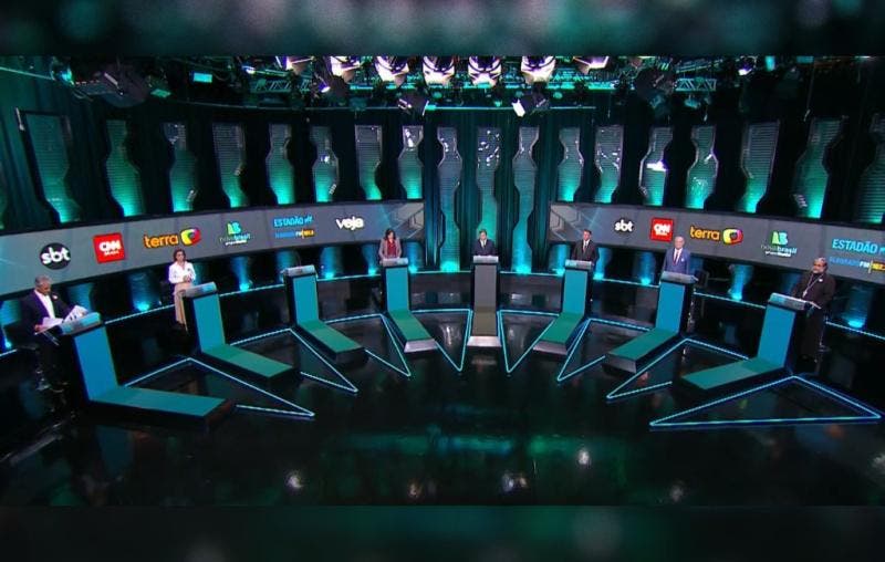O debate deste sábado (24) foi organizado em pool por SBT, CNN Brasil, O Estado de S. Paulo, Terra, Veja e as rádios Eldorado e Nova Brasil.
