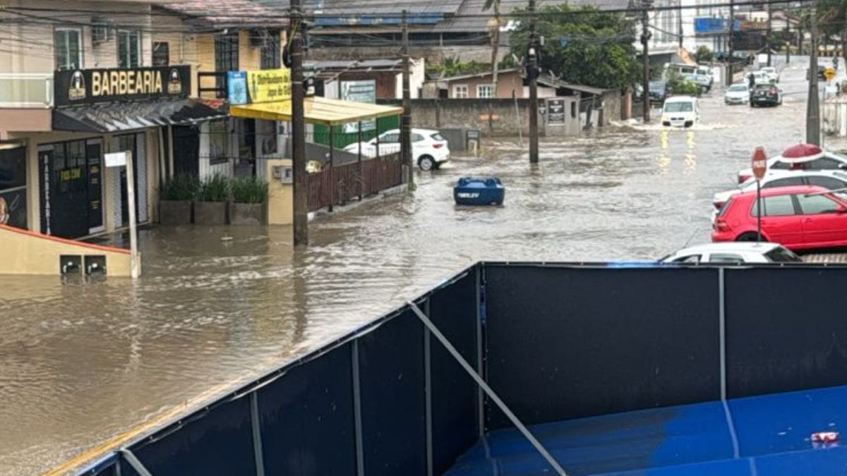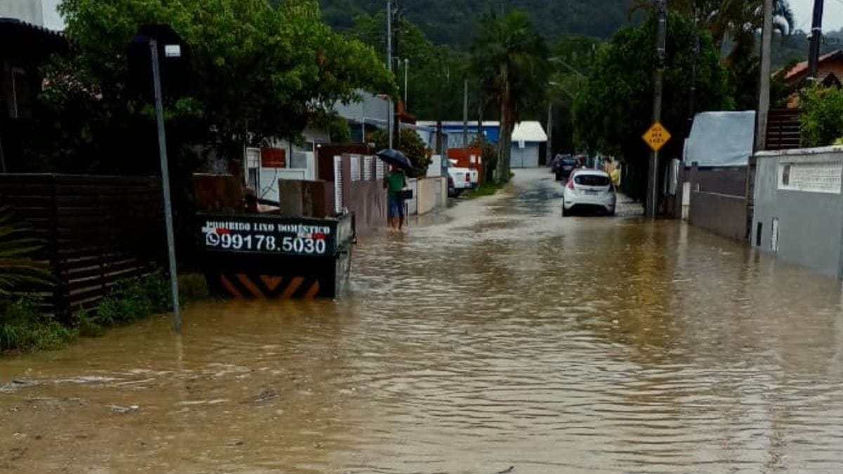 Bombinhas, a península paradisíaca no Litoral Norte catarinense, amanheceu com alagamentos nesta terça-feira (9) por conta da chuva. A passagem de um ciclone extratropical deixa o tempo instável em todo o Estado neste início de semana. Há ocorrências registradas, também, na Grande Florianópolis.