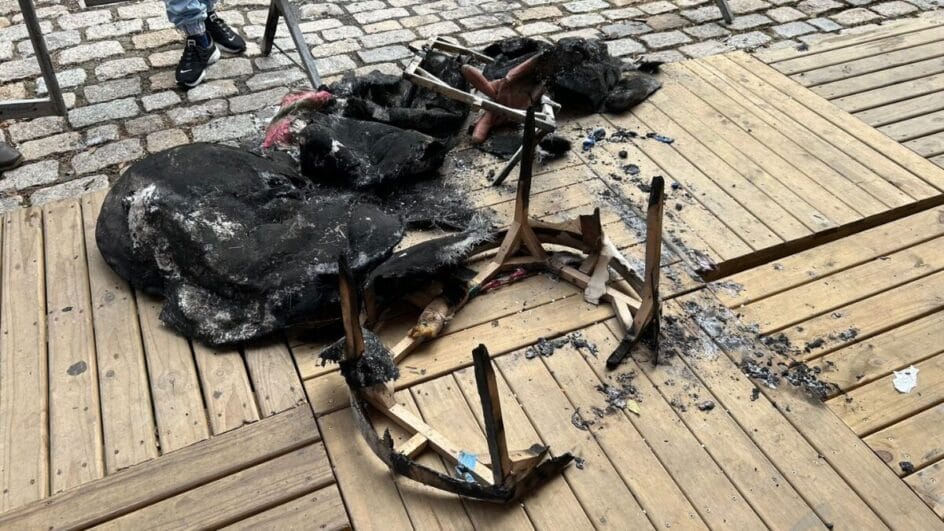 Ele afirma, ainda, que o segurança não conseguiu identificar as pessoas que botaram fogo no boneco. Um boletim de ocorrência foi aberto sobre o caso.