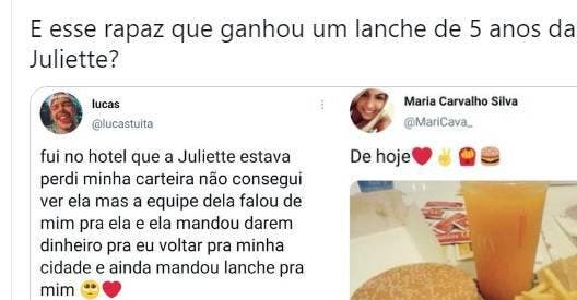 E esse rapaz que ganhou um lanche de 5 anos da Juliette? pic.twitter.com/wl5Zz3ibeh