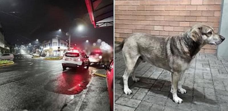 Dois homens de bicicleta arrancaram a bolsa de uma mulher que havia acabado de sair do trabalho. Os ladrões fugiram, mas acabaram surpreendidos por um policial de folga e um cachorro da comunidade, batizado de “Piá”.