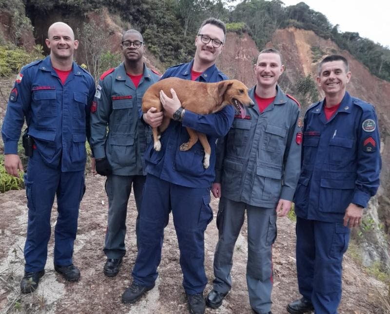 Por ser muito íngreme, o local era de difícil acesso. A equipe teve de entrar em um terreno vizinho e fazer uma trilha, morro acima, por cerca de 30 minutos. Seguindo o barulho dos latidos, os profissionais se aproximaram do cachorro, que foi resgatado. Apesar de assustado, ele não estava machucado.