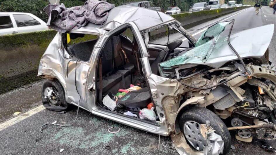 Um grave acidente entre quatro veículos deixou um deles praticamente destruído na BR-101, em Joinville, neste domingo (28). Em um deles, uma criança de apenas dois anos escapou de ferimentos graves graças a cadeirinha.