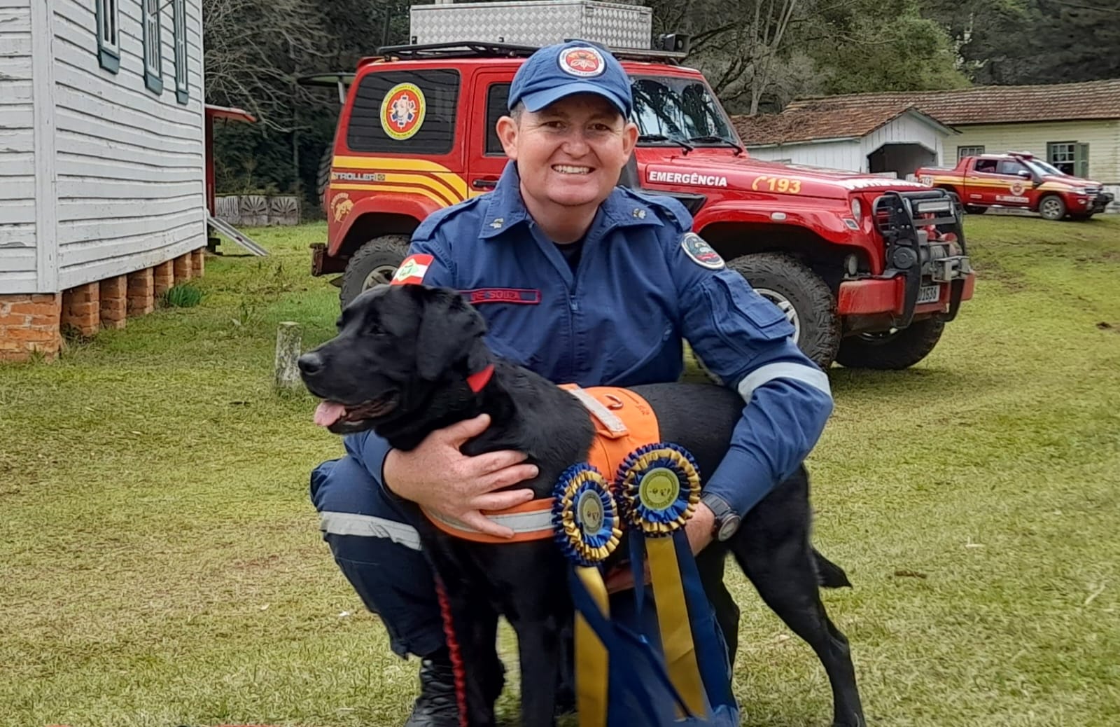 A labradora Zaara atuou por nove anos como cão de busca e resgate do Corpo de Bombeiros Militar de Brusque e, nesta semana, aposentou-se do serviço. Ela formava binômio com o sargento Carlos Alexandre de Souza e, juntos, trabalharam em ocorrências como o rompimento da barragem em Brumadinho (MG) em 2019, as cheias no Rio Grande do Sul no ano passado e a tragédia das chuvas em Pernambuco em 2022.