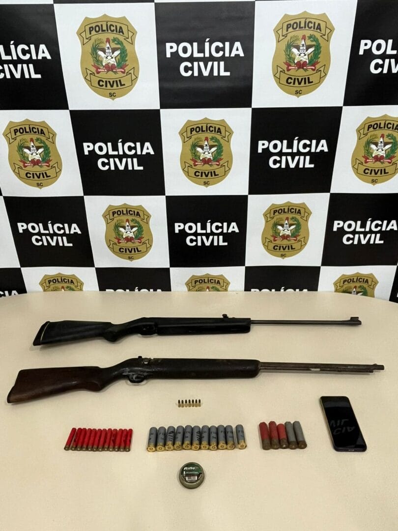 Além disso, os policiais encontraram dentro da residência duas espingardas e diversas munições de calibres 12, 36 e .22. As equipes acharam carne de caça no freezer, a qual passará por uma perícia para identificar a espécie do animal.