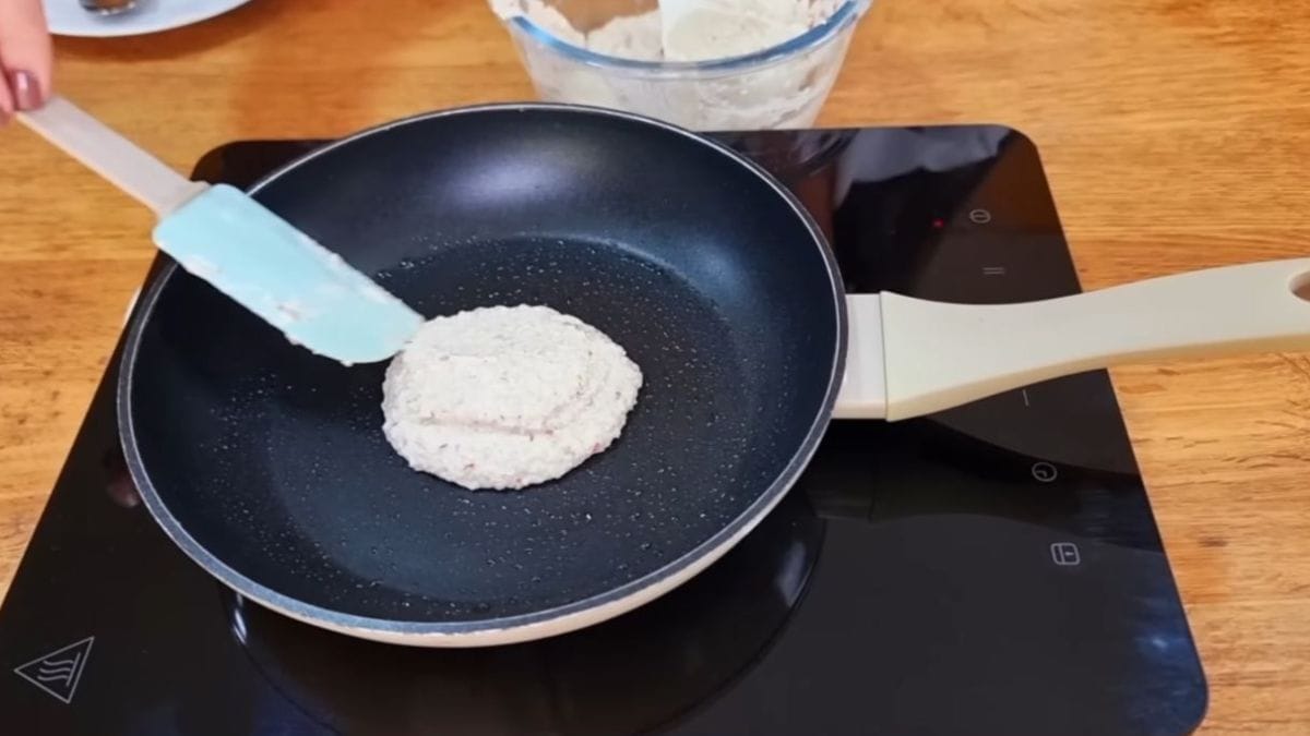 Coloque porções da massa na frigideira, formando pequenas panquecas.