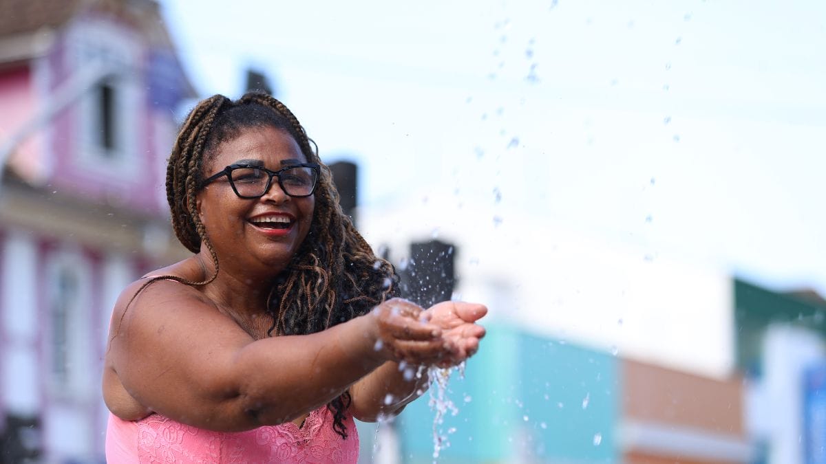 — A gente passa aqui e às vezes até se molha também. Não tem como, está muito quente. É o único ponto de água que tem em Joinville inteira, tirando o rio — conta.