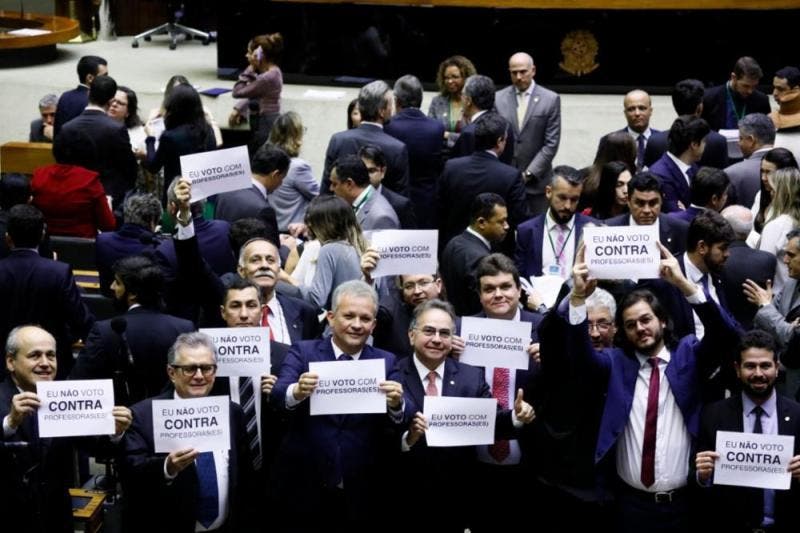 Um destaque que excluía os professores das mudanças da reforma, o que manteria as regras atuais para docentes de educação infantil e ensino médio, no setor público ou privado, chegou a ser rejeitado, mas com placar considerado "perigoso" pela ala governista. A proposta do PDT, no entanto, tem impacto fiscal menor.