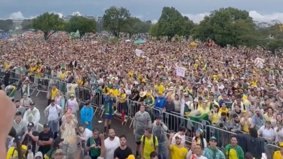 O deputado pediu ao público para não caminhar até a Praça dos Três Poderes, que fica a cerca de seis quilômetros do local da manifestação. O protesto ocorreu de forma pacífica, com faixas que pediam a libertação de Bolsonaro e defendiam a anistia.