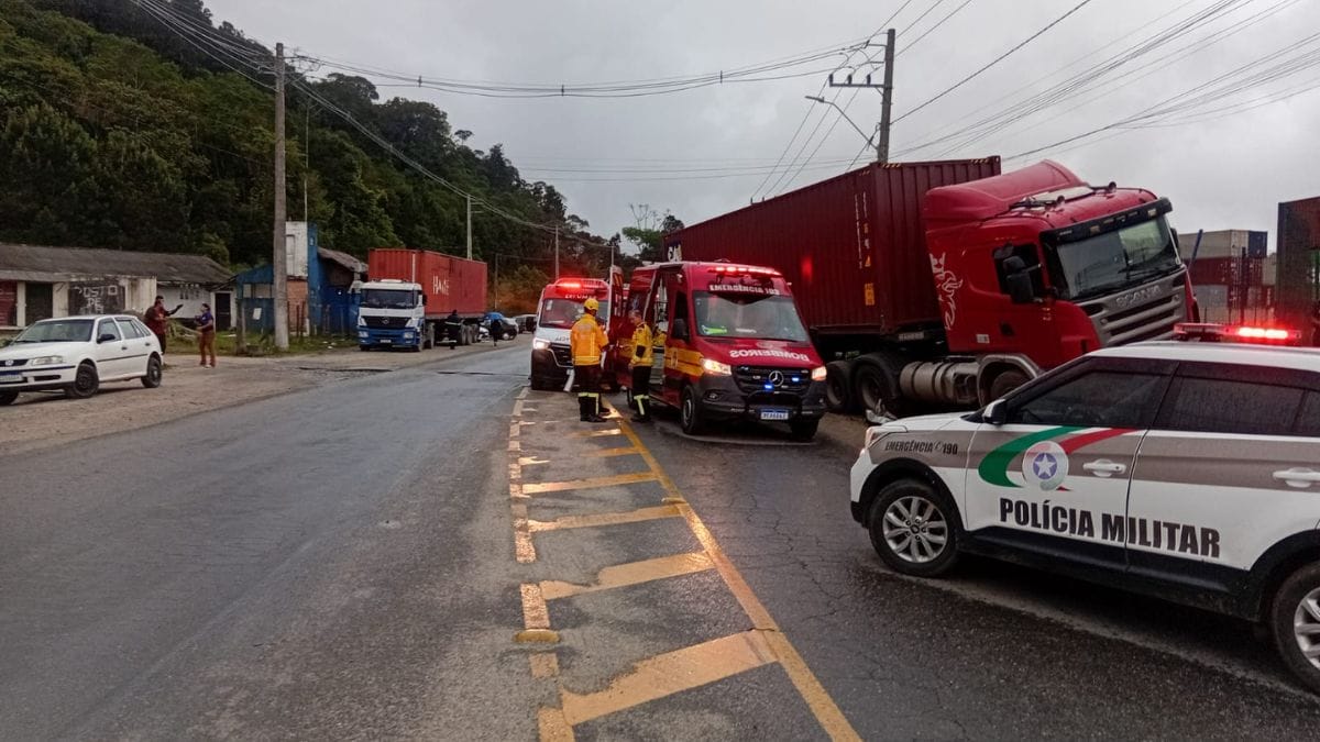 Um caminhão atropelou um pedestre na tarde de segunda-feira (3) em Itapoá, no Litoral Norte de Santa Catarina. Devido aos graves ferimentos, a vítima precisou ser resgatada por helicóptero e levada ao hospital. O acidente aconteceu no bairro Jaguaruna.