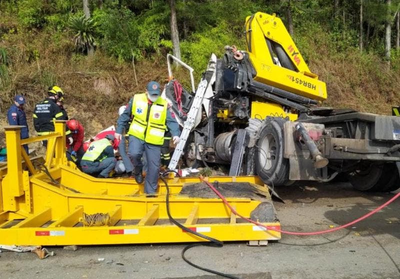 Duas pessoas ficaram gravemente feridas após um caminhão bater contra um barranco e tombar na BR-280, entre Corupá e São Bento do Sul, no Norte de Santa Catarina. O acidente aconteceu por volta das 9 horas desta sexta-feira (15).