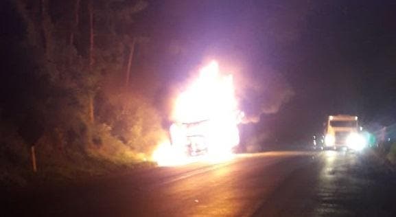 Um caminhão carregado com gado pegou fogo enquanto trafegava pela BR-470, em Rodeio, no Médio Vale do Itajaí, na noite desta quarta-feira (29). Os bombeiros voluntários da região chegaram a trabalhar para conter as chamas por volta das 20h30min, porém alguns animais não conseguiram sair a tempo do veículo e acabaram morrendo queimados.