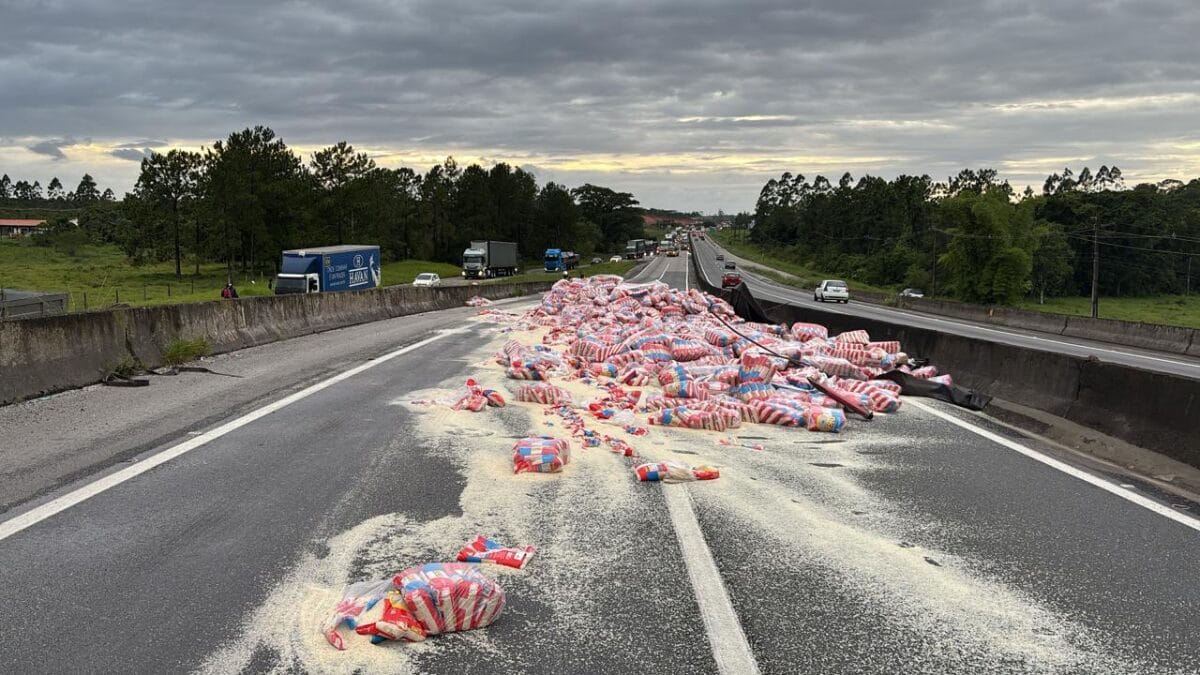 Por conta do tombamento, as duas pistas principais ficaram interditadas. Segundo a Polícia Rodoviária Federal (PRF), às 7h, o fluxo de veículo estava sendo desviado pelo acostamento.
