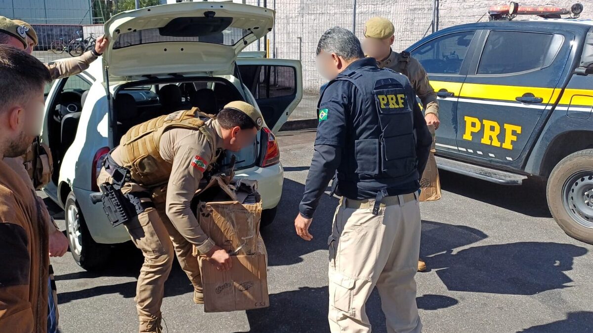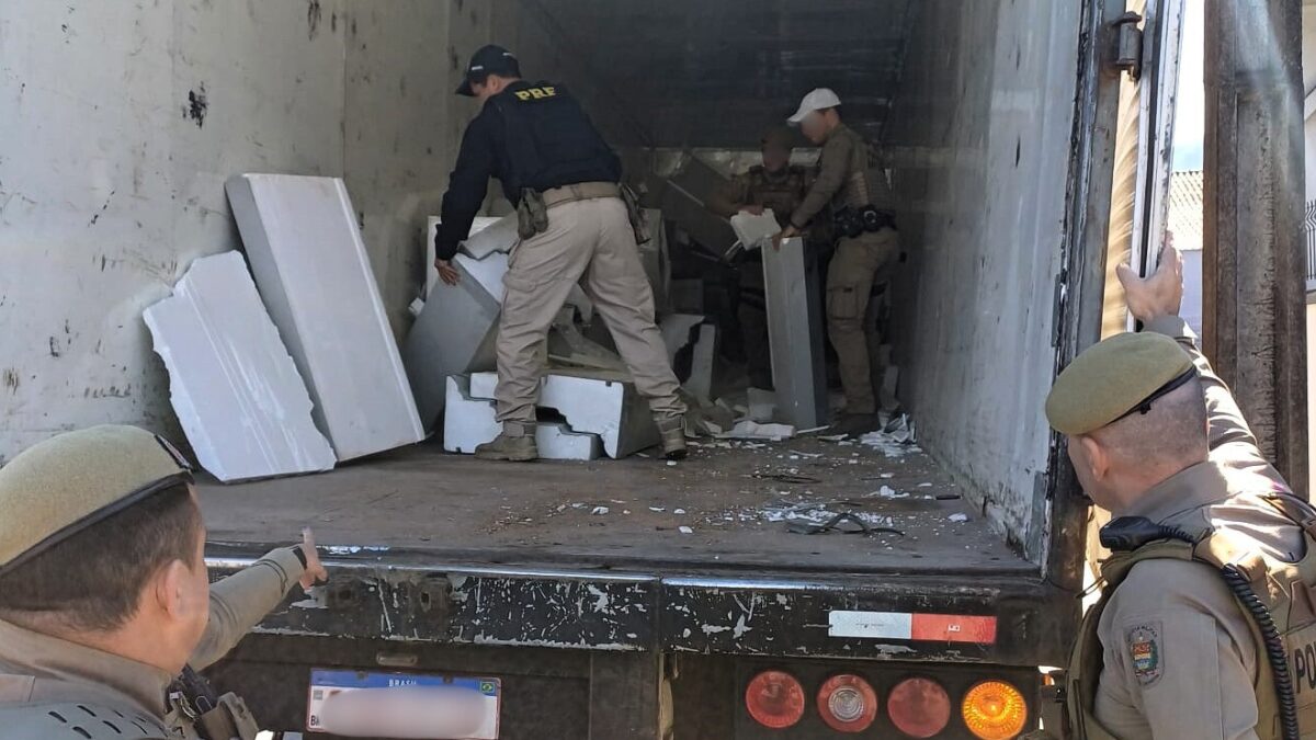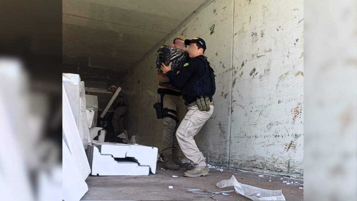 Junto com o caminhão, foi abordado um segundo veículo “batedor”, que estaria dando apoio ao carregamento. Após a abordagem, os policiais passaram a inspecionar os veículos. Ao abrir o baú do caminhão, os policiais encontraram os tabletes de maconha no fundo do compartimento de carga, oculto por lonas e placas de isopor.
