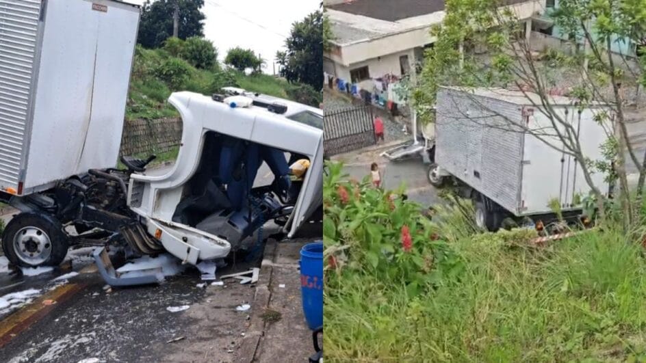 Moradores da rua relataram à equipe da NSC TV que o caminhão desceu a Rua Damázio Matias de Oliveira e a cabine se desprendeu na curva do barranco, levando à queda na rua abaixo.