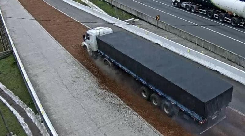 A Arteris Litoral Sul informou que o motorista e o passageiro, que estavam no caminhão, não se feriram.