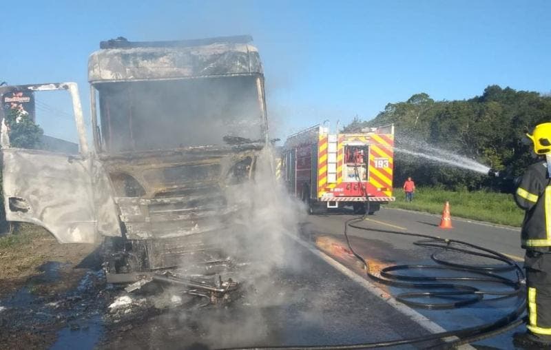 De acordo com as informações, após os bombeiros conseguirem apagar o incêncio, deixaram o local. Mas o veículo de carga voltou a pegar fogo e a guarnição foi chamada novamente para combater as chamas novamente.