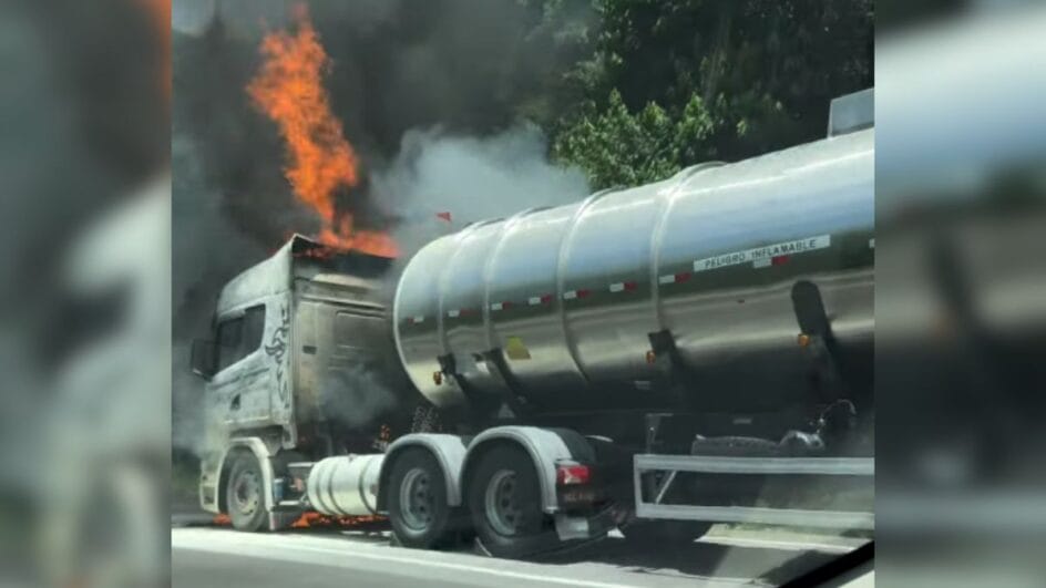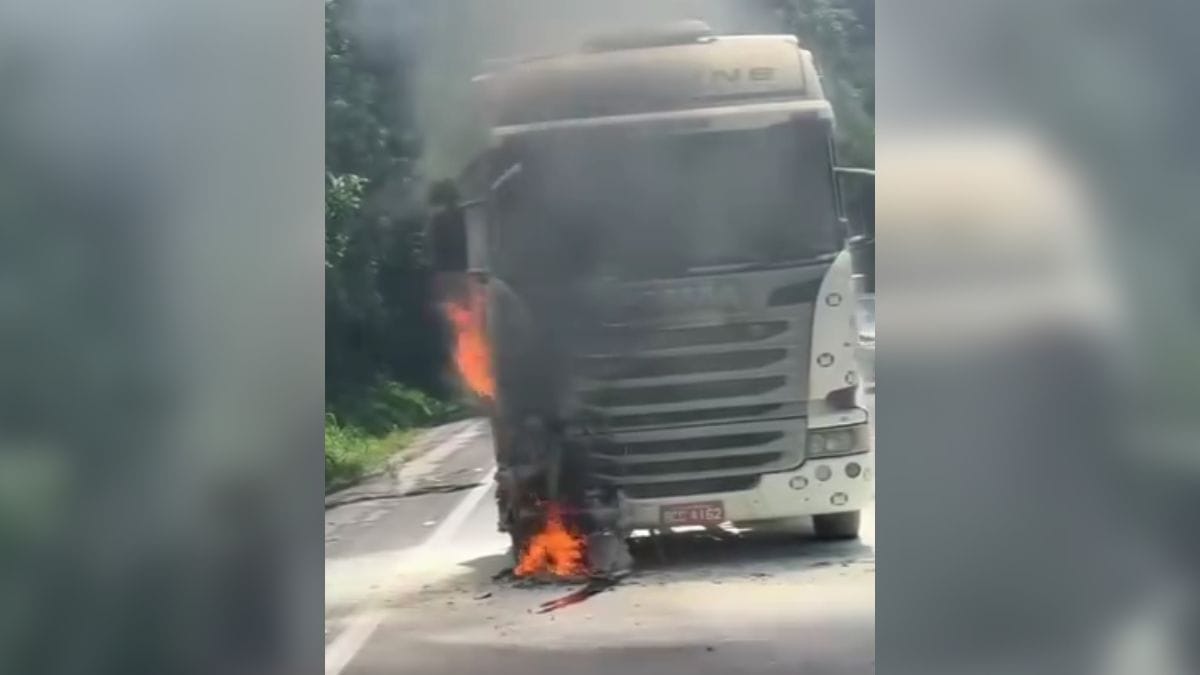 Um caminhão pegou fogo e a BR-101 acabou sendo totalmente interditada no trecho que passa pelo Morro do Boi, em Itapema. O acidente ocorreu por volta das 13h deste sábado (31) no Km 141 da rodovia. Às 13h37, o local foi parcialmente liberado.