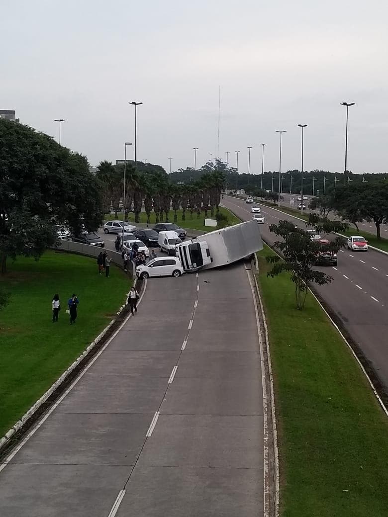 Um caminhão tombou no final da manhã desta quinta-feira (23) no final da descida do elevado do CIC em direção ao Titri. O acesso da Avenida da Saudade à Avenida Beira-Mar, no sentido Trindade, ficou bloqueado até pouco antes das 12h.