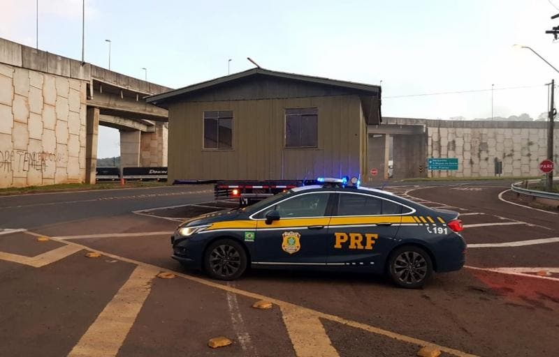 A Polícia Rodoviária Federal (PRF) flagrou um caminhão transportando uma casa de madeira na carroceria e colocando outros motoristas em risco. O caso ocorreu na manhã deste domingo (26) na BR-480, em Chapecó, no Oeste de Santa Catarina.