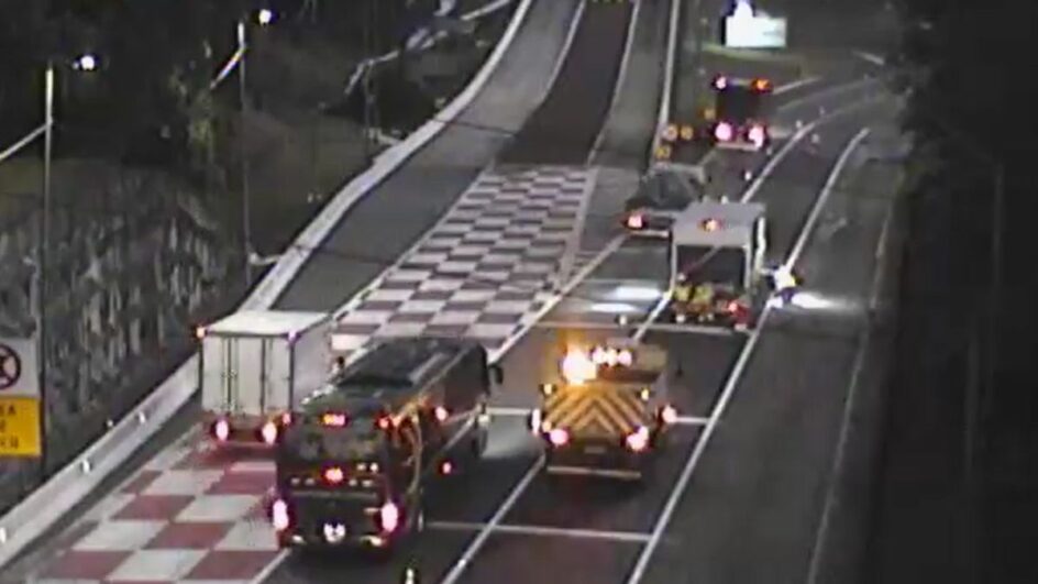 Na última terça-feira (11), uma câmera da Arteris registrou o momento em que um caminhão, após uma pane no sistema de freios, entra na área de escape do Km 667,3 da BR-376. Na ocasião, uma das pistas da rodovia estava interditada, com trabalhadores na pista.