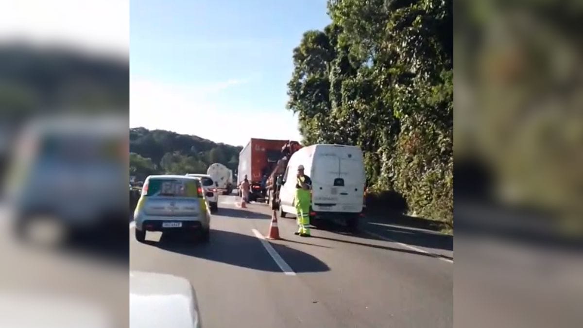 Equipes da Polícia Rodoviária Federal (PRF) e Arteris Litoral Sul, concessionária responsável pelo trecho, atuaram no local e orientaram os motoristas.