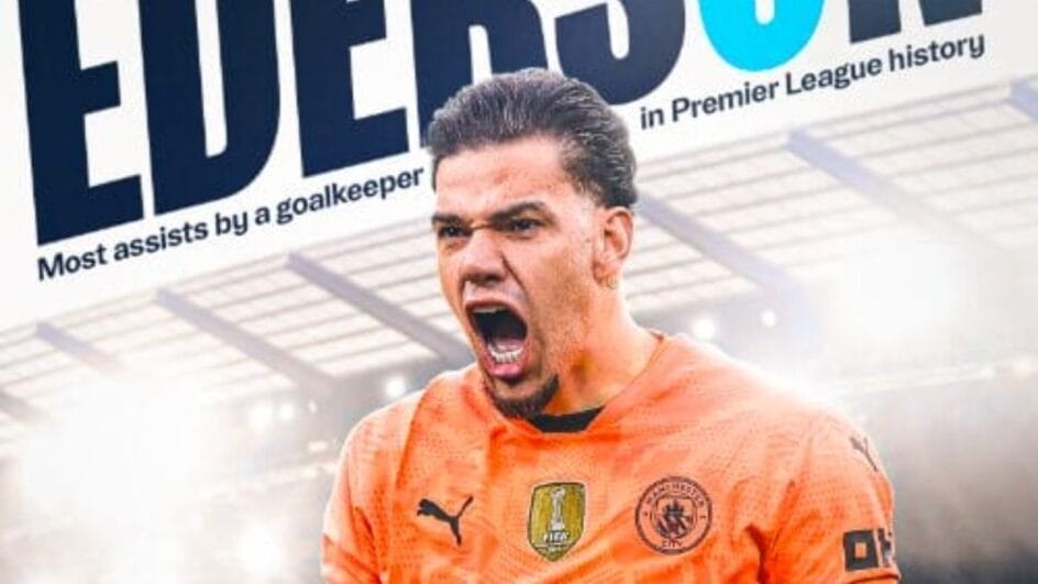 O primeiro gol foi anotado por Marmoush logo aos 18 minutos, em um chute por cobertura sobre o goleiro Dúbravka. Mas uma curiosidade: o lançamento saiu dos pés do goleiro Ederson (veja abaixo). O jogador chegou ao sexto passe para gols Premier League e se tornou o arqueiro recordista em assistências na competição, com seis no total.