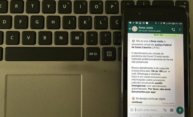 Depois de receber 6,5 mil processos sobre o auxílio emergencial, a Justiça Federal de Santa Catarina está lançando um canal de comunicação por meio do WhatsApp. A ideia é informar sobre esses processos durante a pandemia do coronavírus.