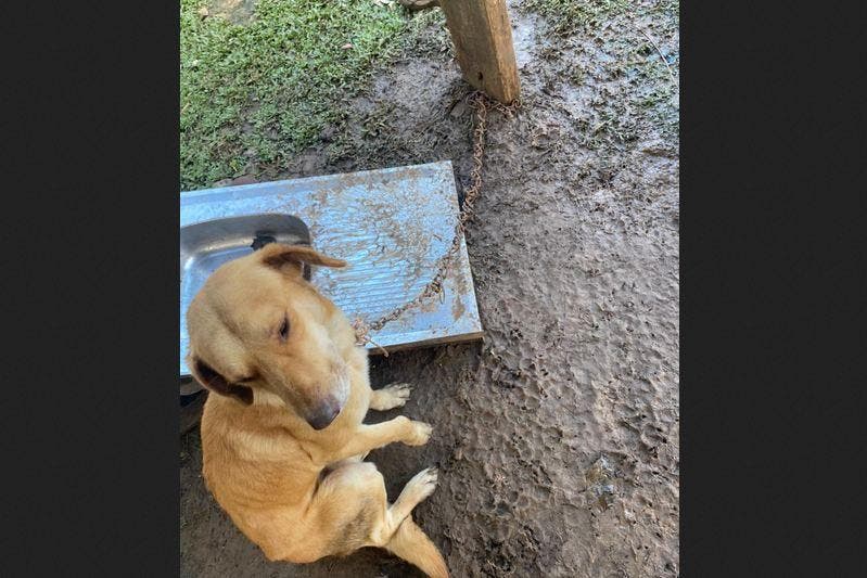 Segundo informações da polícia, denúncias de que um cachorro sem raça definida ficava exposto à chuva e ao frio, em meio à lama e preso a uma corrente muito curta, que não lhe dava mobilidade, foram encaminhadas à delegacia. Diante da situação, os policiais foram até o endereço onde encontraram o animal.